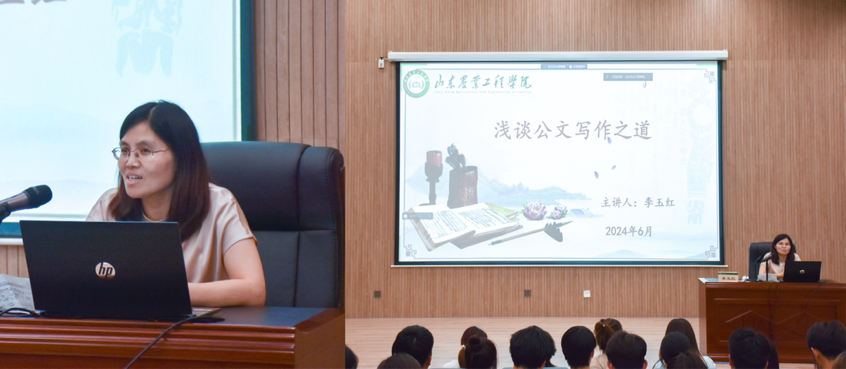 为深入学习贯彻习近平总书记关于青年工作的重要思想,弘扬社会主义核心价值观,全面提升我校团学骨干和青马学员的综合素养,6月13日,第六期青马工程“领航班”第十次专题讲座在淄博校区大学生活动中心开讲。本次讲座邀请到了人文学院教授田芸、副教授李玉红分别围绕礼仪规范和公文写作作专题报告。