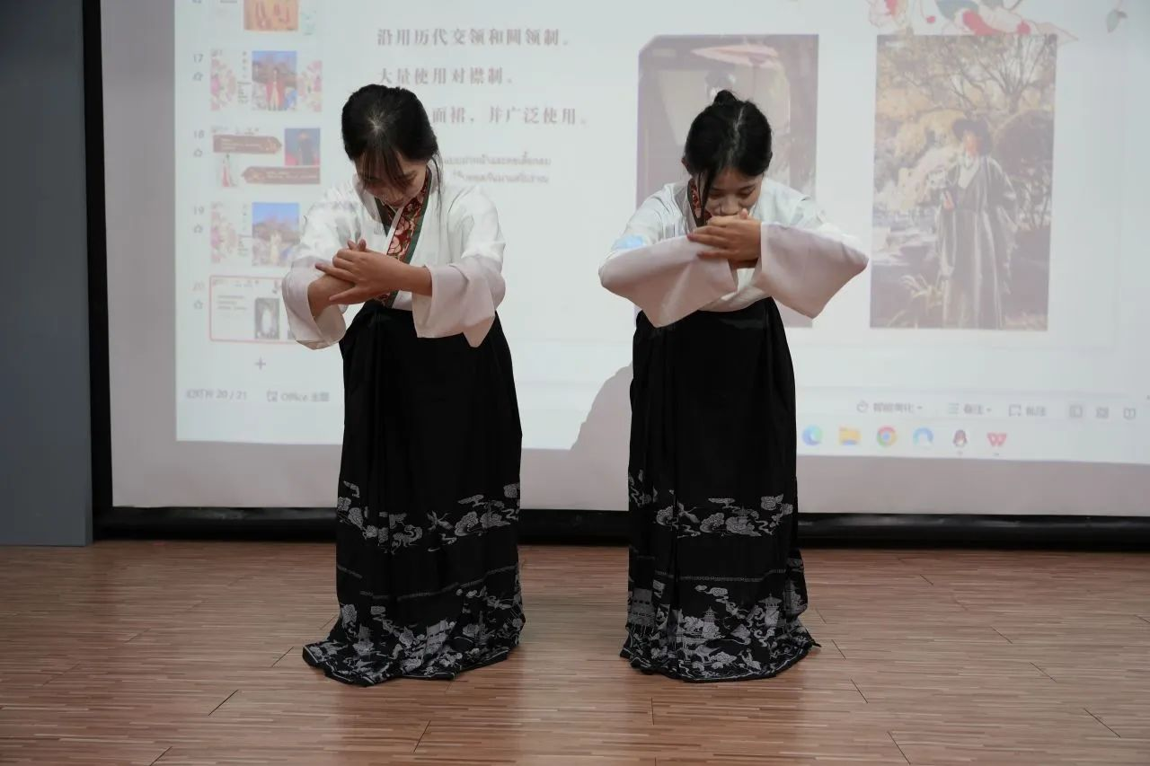 汉服是汉族的传统服饰,以宽袍大袖、交领右衽为基本特征,历经汉、唐、宋、明等朝代演变,形成了丰富多彩的服饰体系。汉服不仅仅是一种服饰,是中国“衣冠上国”“礼仪之邦”“锦绣中华”的体现,更是蕴含深厚文化底蕴,承载着华夏五千年文明与审美的中华文化瑰宝。此次汉服专场活动,不仅加深了泰国师生对中国汉服文化的了解,更激发了对中华文化的热爱,彰显了文明交融的魅力。今后,我校将继续加强中华优秀传统文化的传承和弘扬,加强国际交流合作与国际传播,携手国际合作伙伴,持续呈现丰富多彩且充满趣味的文化活动,搭建文化交流与合作的广阔平台,为推动文明的交融互鉴积极贡献力量。
