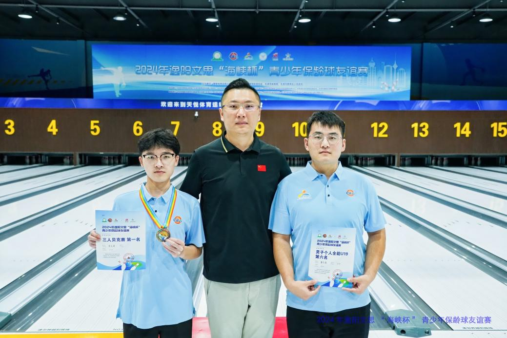 近日,我校食品科学与工程学院黄克萌、机械电子工程学院李晓在基础课教学部指导老师毛秉斐的带领下参加2024年逸阳文思“海峡杯”青少年保龄球友谊赛。在三人贝克赛中,黄克萌奋勇拼搏、突破自我,斩获冠军,并荣获U19组男子个人全能第六名,实现了我校在该项赛事的新突破。