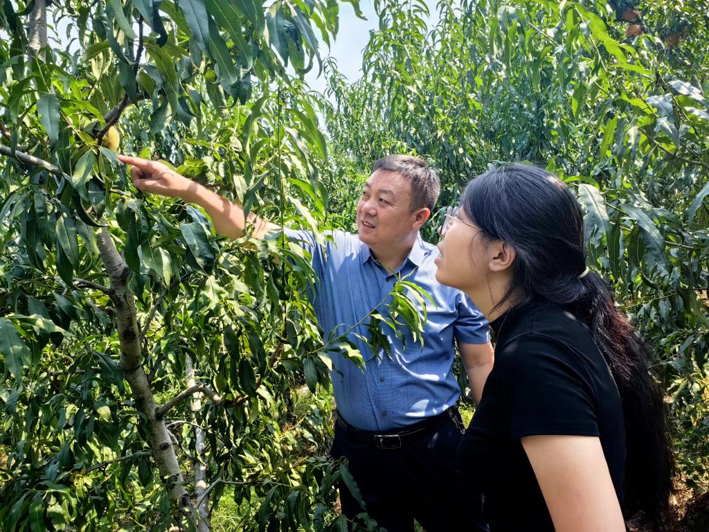党徽闪耀引方向,创新引领强种业。在党组织的激励与支持下,充分发挥党员的攻坚精神,直面科研难题,突破桃离核性状基因难以表达的瓶颈,历经20余年主持育成“金黄金”系列抗氧化离核鲜食黄桃新品种9个,成果达国内领先水平。以党建链串联创新链与产业链,新品种、新技术示范推广14.2万亩,辐射带动产业链增收15.16亿元,推动山东桃产业从“规模扩张”向“品质引领”跃升,擦亮“齐鲁优品”金字招牌,推动我省桃产业提质增效、转型升级,以科技赋能乡村振兴。