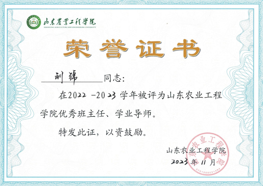 他充分发挥博士研究生实验技能优势,开设并组织学生参加各类学术报告和科技论坛,培养学生科研兴趣。主动吸纳学生参与到自己的科研项目中,同时为学生提供国家级、省级科研平台实习机会,进一步提升学生科研认知和科研技能。以专业为基础、以产业为导向积极组织学生参加各类学科竞赛,指导学生获山东省生化实验技能大赛一等奖、山东省智慧园艺创新创业大赛一等奖等,个人获得“优秀指导教师”荣誉称号。2023年指导学生获校级优秀毕业论文,个人获“优秀毕业论文指导教师”荣誉称号。