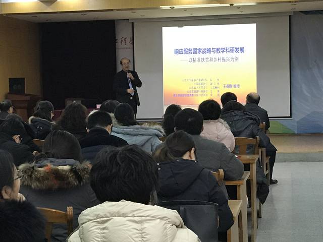 王德刚教授以精准扶贫与乡村振兴为例,同时结合自身的实践经验与研究成果,理论联系实际,阐释了应用研究应如何与国家战略对接。王教授指出,应用学科必须积极响应和服务国家战略,从事应用学科教学研究的教师必须积极参与社会实践,了解产业发展前沿,不然教给学生的都是落伍的知识。最后,王教授谈了几点体会,他指出做好应用研究,要掌握“一个关注”、“两个把握”、“三个依托”,即关注政策,把握实践前沿、理论前沿,依托行业、企业、地方。