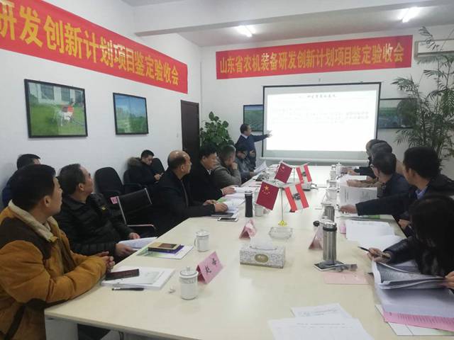 项目鉴定验收委员会由山东大学能源与动力工程学院王志明教授(院长、博导)任组长,山东省农业机械试验鉴定站管延华站长、山东省农机技术推广站陈传强站长、山东省农业技术推广总站鞠正春站长及山东正华会计师事务所有限公司王晓高级会计师等5位专家学者组成。会议由山东省农业机械局科技处辛章法处长主持,我校杨振宁副校长、科技处董传河处长以及课题承担单位及合作单位山东省农业机械科学研究院、山东华泰保尔水务农业装备工程有限公司等项目组主要成员参加了会议。