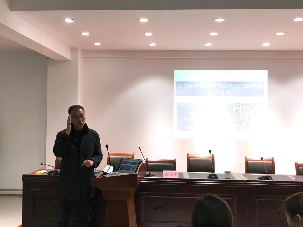 12月20日下午,经济管理学院特邀浙江工商大学“西湖学者”俞立平博士在济南校区办公楼三楼第三会议室做“各类课题申报选题技巧”专题报告。经济管理学院全体教师和2017级、2018级部分本科学生以及其他学院骨干教师参会聆听。