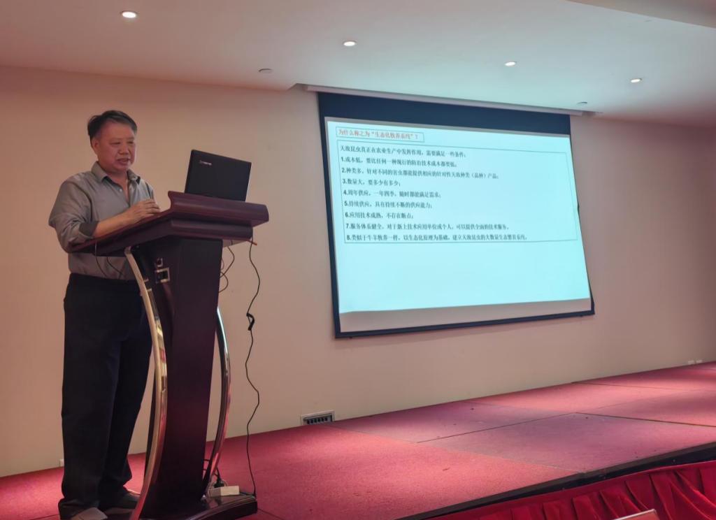 论坛会上,我校特聘教授刘玉升带来了两场精彩的报告——《昆虫农业解读》与《彻底生防桃蚜,保障肥桃品质》。报告中,刘教授凭借深厚的专业知识与丰富的实践经验,深入浅出地阐述了昆虫农业的理念与应用,为与会者打开了一扇了解昆虫在农业生产中重要作用的新窗口。随后,肥城市千亩园果蔬专业合作社、山东梦鲤农业科技有限公司等多家企业依次登台,分享了他们在生态循环农业领域的实践经验与成功案例。这些分享涵盖了从农业生产模式创新到技术应用的各个方面,为大家提供了多元化的思路与借鉴。报告结束后,与会者围绕嵌入昆虫元素的现代生态循环农业模式的发展前景与创新技术体系展开了热烈而深入的讨论。大家各抒己见,碰撞出智慧的火花,共同为推动这一新兴农业模式的发展出谋划策。