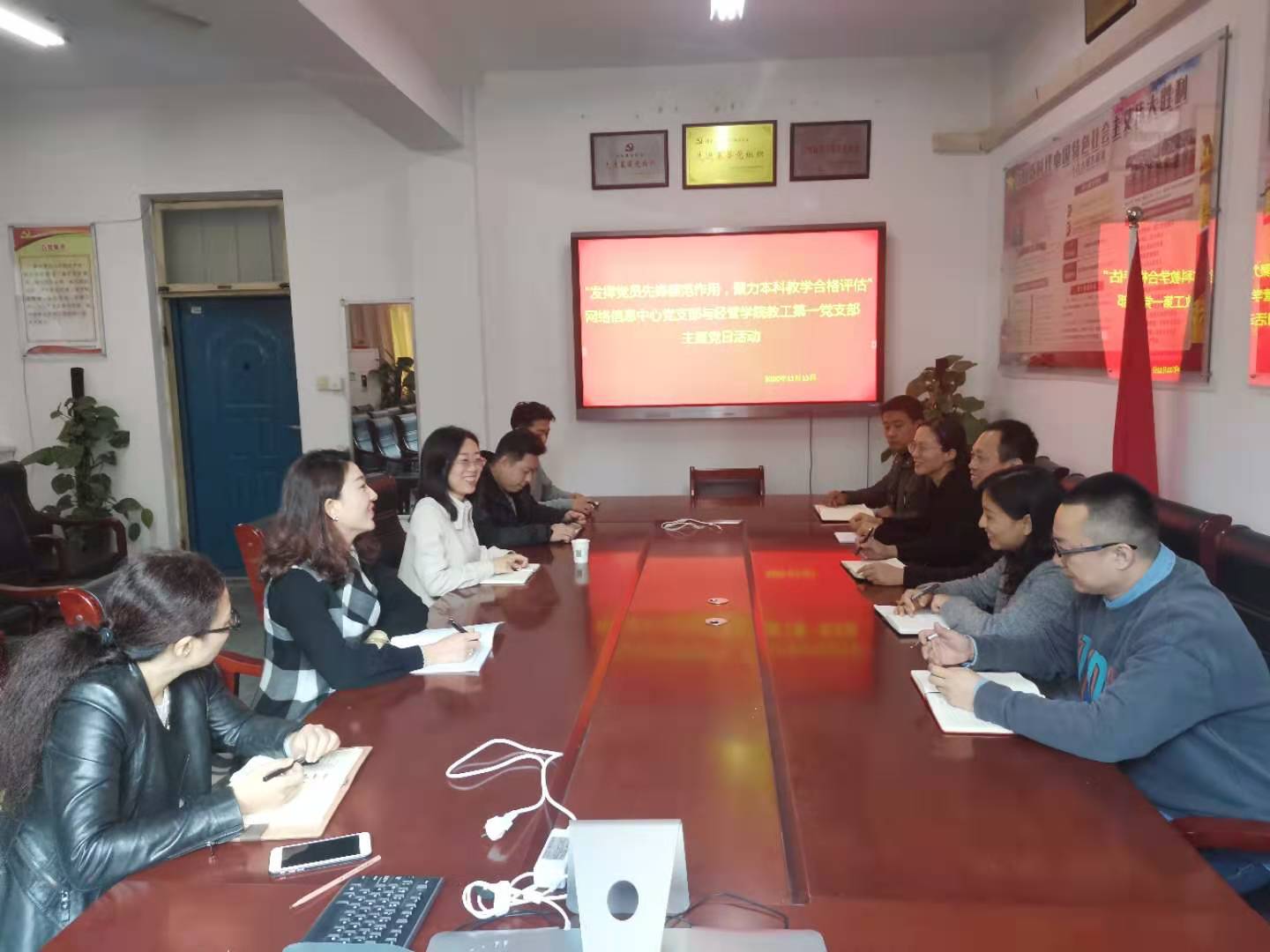 11月12日上午,网络信息中心党支部联合经济管理学院教职工第一党支部开展了“发挥党员先锋模范作用,聚力本科教学合格评估”主题党日活动,活动由网络信息中心党支部书记李欣同志主持,网络信息中心党支部及经济管理学院教职工第一党支党员参加了此次活动。