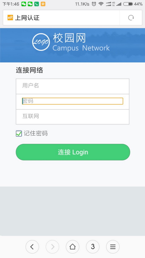 3、学生一个账号同时只能登陆一个终端(有线或无线),在手机登陆,电脑自动下线,在电脑登录,手机会自动下线。