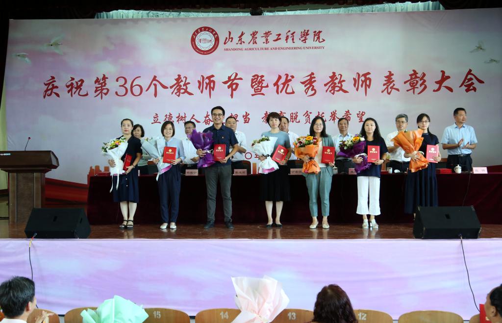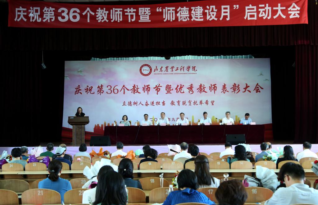 9月10日下午,我校在济南校区大礼堂隆重举行庆祝第36个教师节暨“师德建设月”启动大会。校党委书记丁希滨出席大会并讲话。校领导王西奎、张业赏、张兆明、杨振宁、张伟、穆若英出席大会。学校从教三十年及以上在职教师,学校评选表彰的2019-2020学年最美教师、师德标兵、优秀教师、优秀教育工作者,各学院教师代表、学校各有关部门领导和工作人员、学生代表等参加会议。大会由王西奎主持。山东卫视、山东教育卫视等多家媒体对大会进行了报道,同时,学校通过官方微博进行了直播。