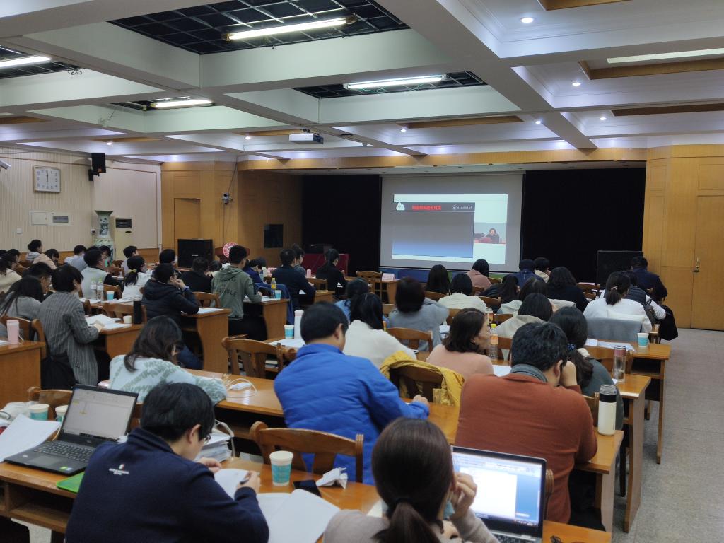 11月6日晚,在济南校区1号教学楼5楼多功能厅,新入职教师集中教育培训班通过在线培训的形式,收看了北京航空航天大学姚小玲教授视频课程。姚教授以《师德师风建设---新时代高校教师的专业素养与品格》为主题,分别从师德师风建设重要性、师德师风建设与传统文化、师德师风建设途径与对策等三个方面进行了生动阐述。诙谐幽默的语言、丰富的教学内容及精美的课件展示让学员们仿佛与姚教授面对面,赢得了参训学员的阵阵掌声。